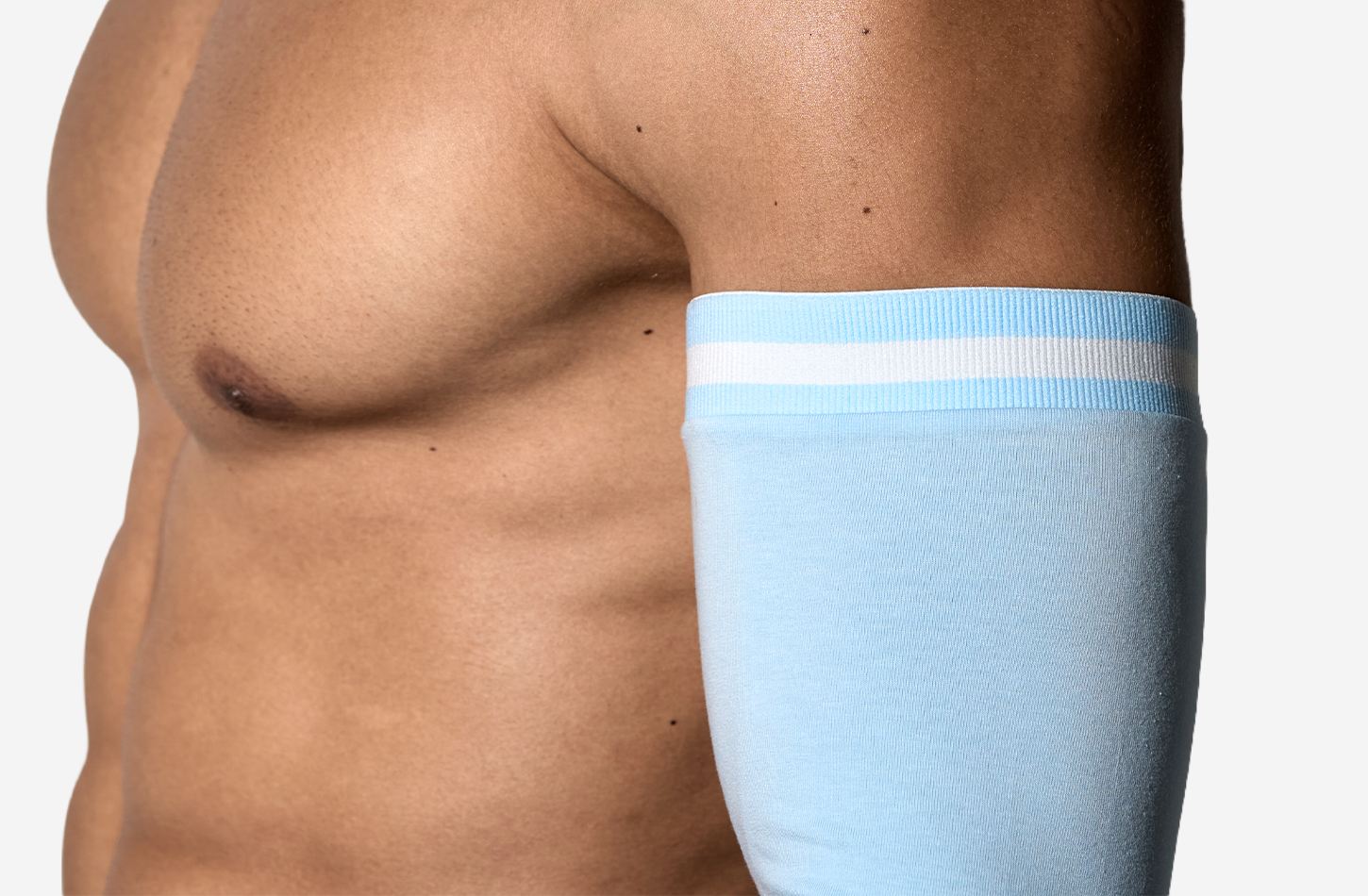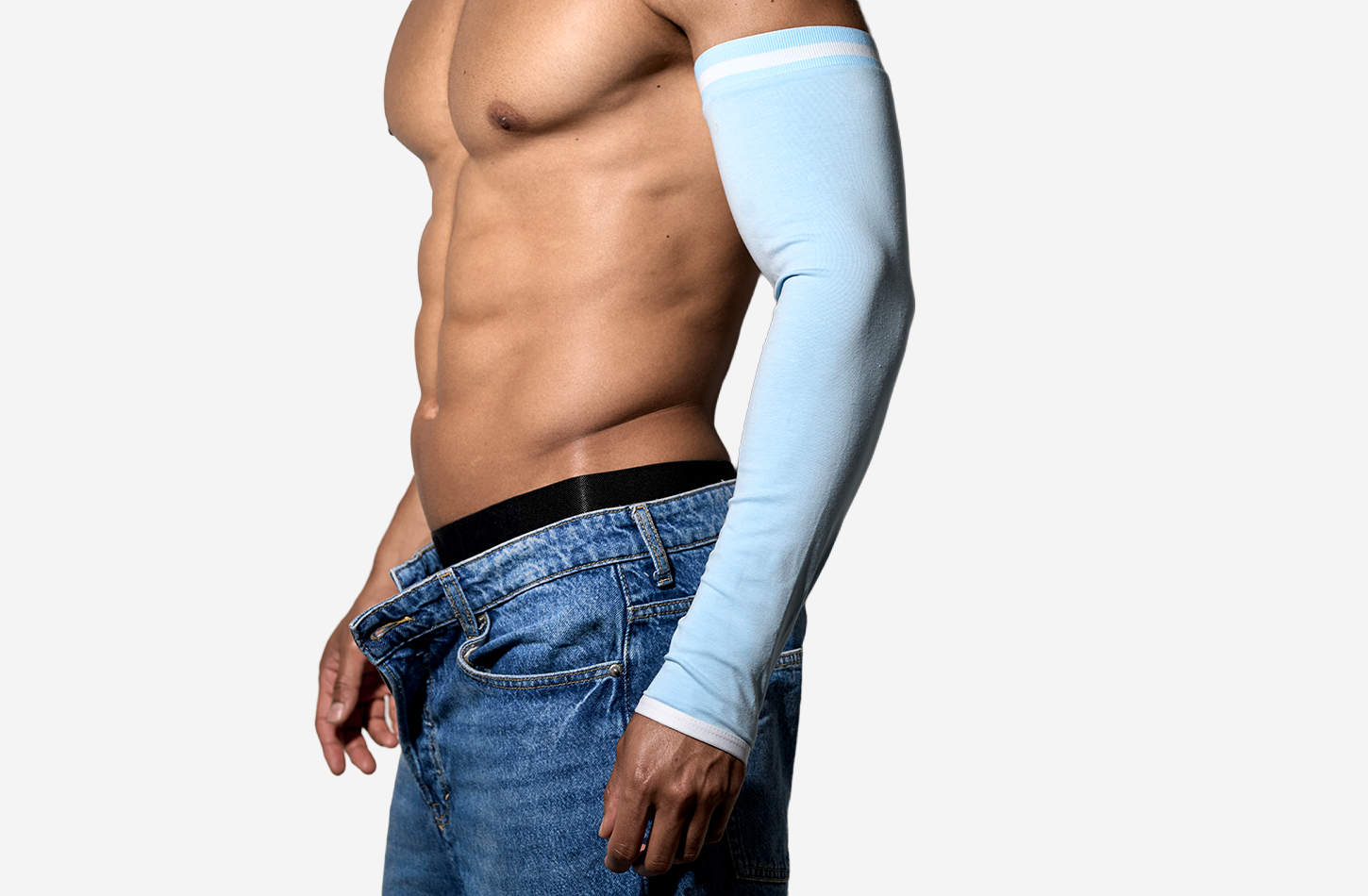 A cool-toned layer designed to frame the body without covering it. The Frost Sleeve sharpens the silhouette, drawing attention to shoulders and arms while keeping the torso exposed. A styling piece that adds structure, contrast, and intention to minimal looks.